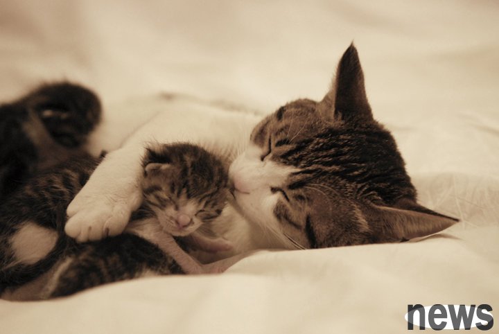 There are also cats who are led by their children, and their sleeping positions are as thin as a hair.