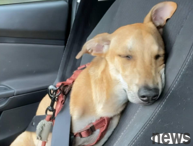 The owner also took Golden on a long trip, was arranged to sit in the passenger seat, and slept so soundly.