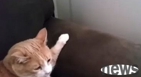 Baby, are you still angry with me? The Facebook fan page Break shared a video of a cat couple having a cold war. The orange cat in the picture is the furious wife. She is looking at the sofa with emotionless eyes, as if she is still sulking. At this time, the white-faced cat of the husband pokes his head out to observe the enemy.