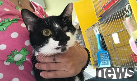 The one-eyed cat who loves to be petted becomes the welcome cat of the animal house.
