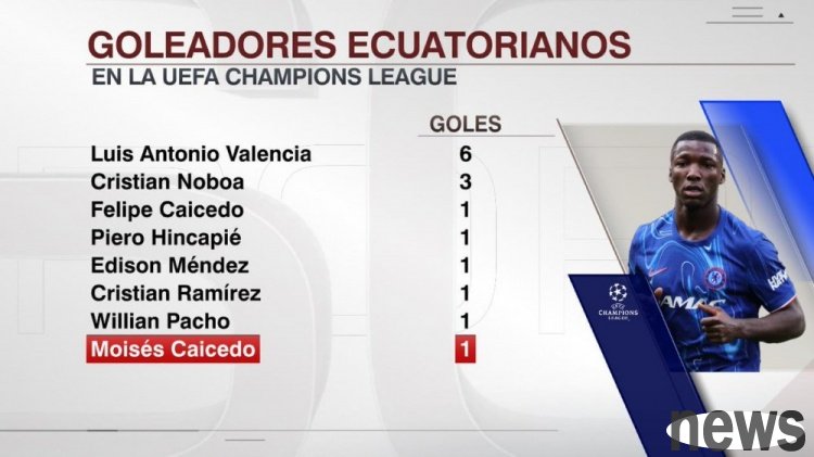Caicedo started for Chelsea in this campaign and scored his first goal in the Champions League. He became the eighth Ecuadorian player to score in the Champions League.