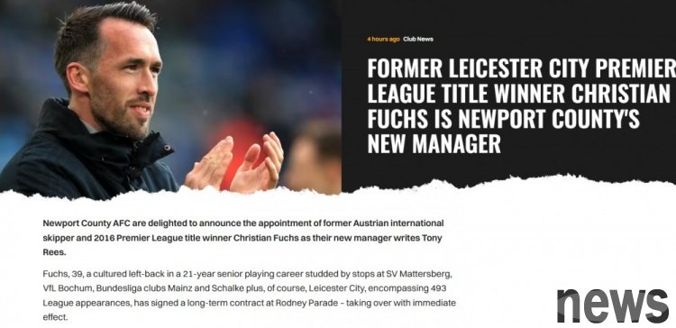 Newport County Chairman Hugh Jenkins said that Fuchs's ambitions are highly consistent with the club's goals and he hopes that he can improve the team's current situation in the English League Two. Fuchs is expected to form his own coaching staff and make his managerial debut away to Oldham on Saturday.